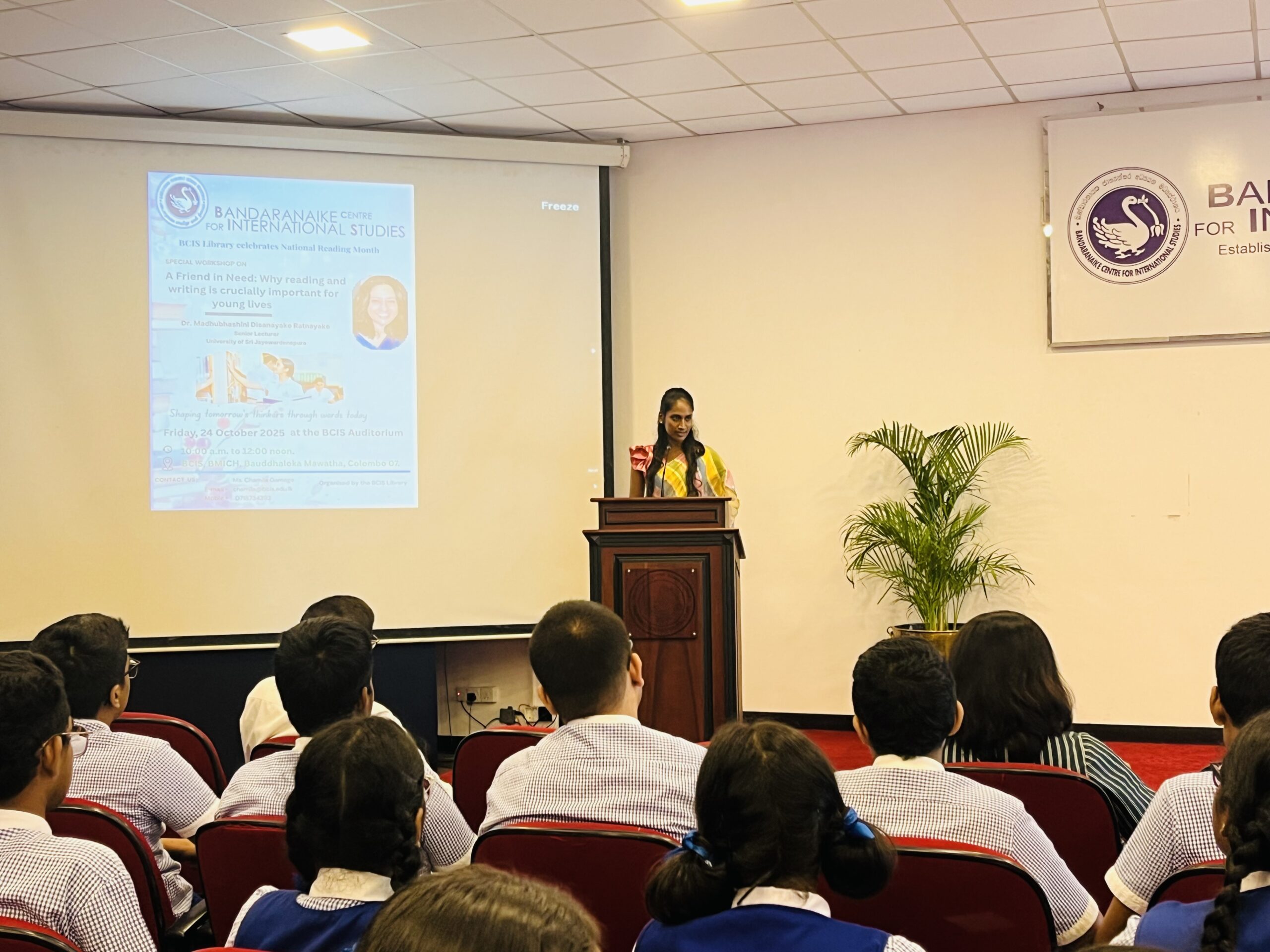 The session was conducted by Dr. Madhubhashini Disanayake Ratnayake, Senior Lecturer at the University of Sri Jayewardenepura, who shared valuable insights into the transformative power of reading and writing in shaping young minds.