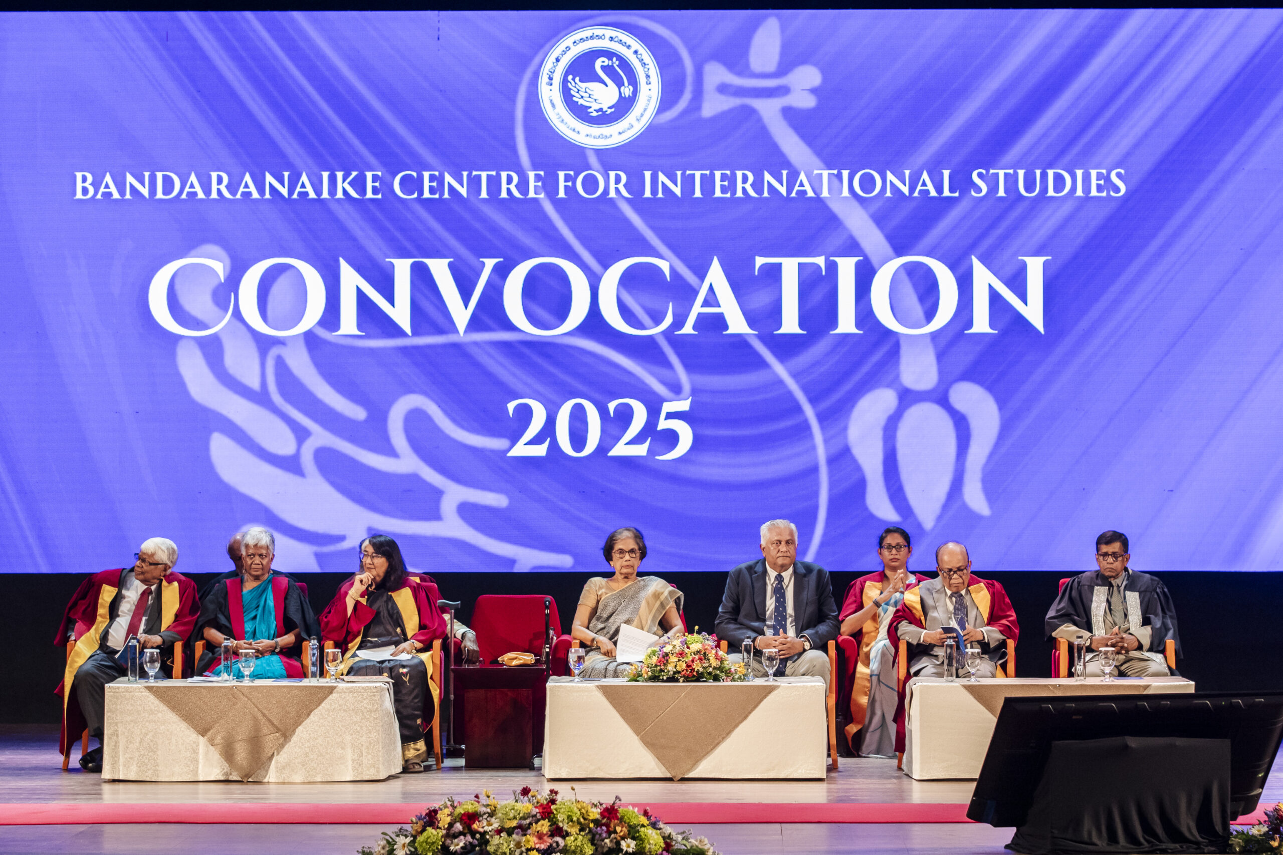 The Annual Convocation of the International Relations programmes of the Bandaranaike Centre for International Studies (BCIS) was held on Monday, 10 November 2025, from 3.00 p.m. onwards at the Bandaranaike Memorial International Conference Hall (BMICH). The ceremony marked a significant milestone as 319 students were conferred Certificates, Diplomas, Higher Diplomas, and Postgraduate qualifications in International Relations, celebrating the successful completion of their academic journeys at BCIS.