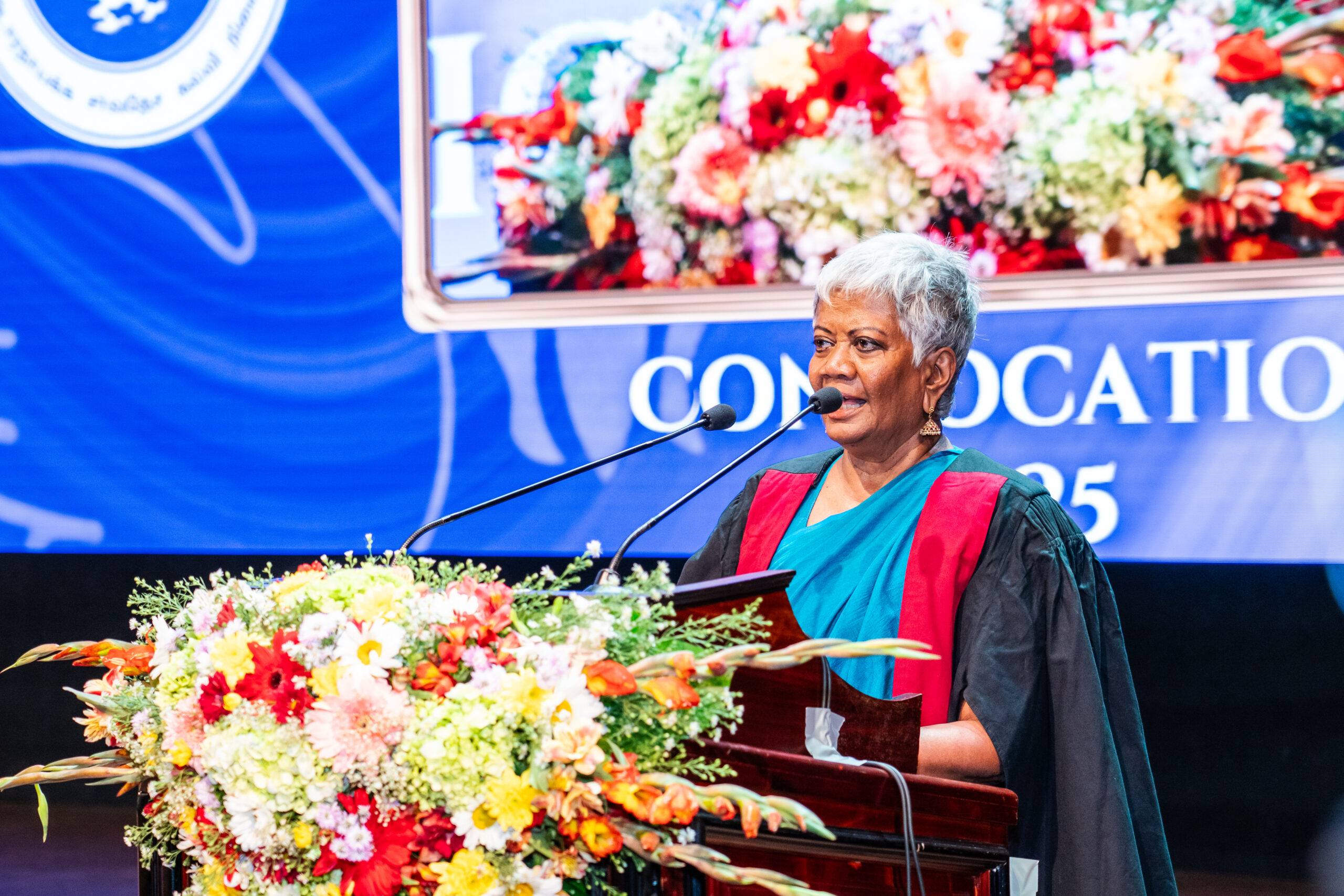 Professor Shalini Randeria delivered the keynote address, enriching the occasion with her insightful reflections. Adding further distinction to the event, H.E. Madam Chandrika Bandaranaike Kumaratunga, Chairperson of the Bandaranaike Centre for International Studies, graced the convocation with her esteemed presence.