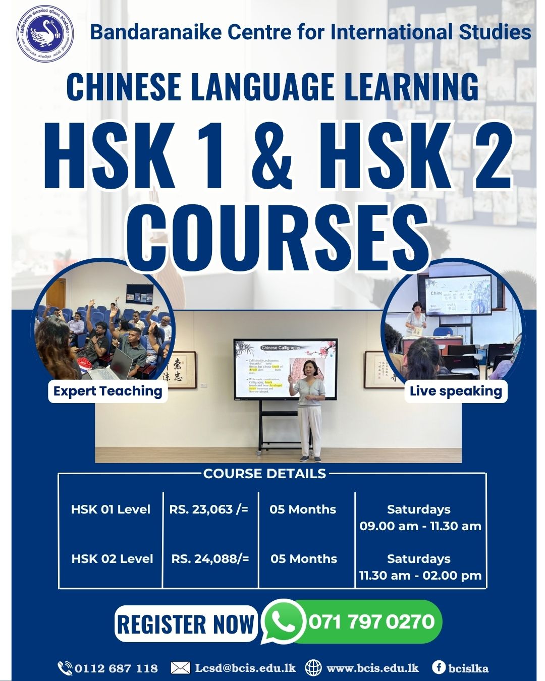 It is our vision to add more languages and expand on the existing courses by including more dialects, thereby making a BCIS a truly international language hub.