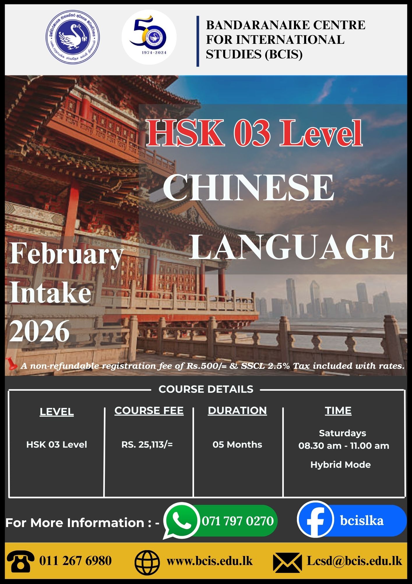 | HSK 03 Level | Rs. 24,612/- | Rs. 500/- |
