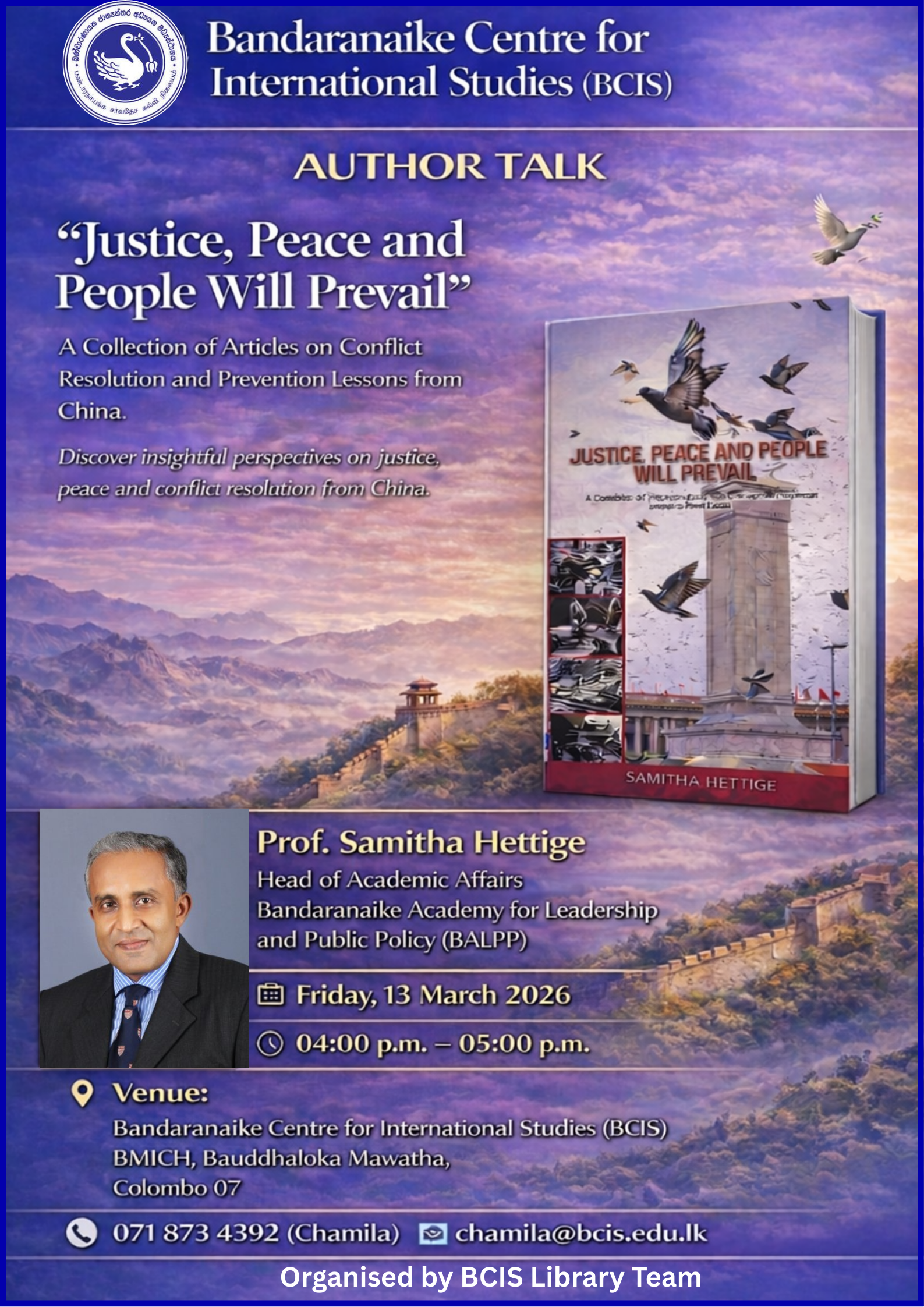 Justice, Peace and People Will Prevail – Author Talk by BCIS Library
